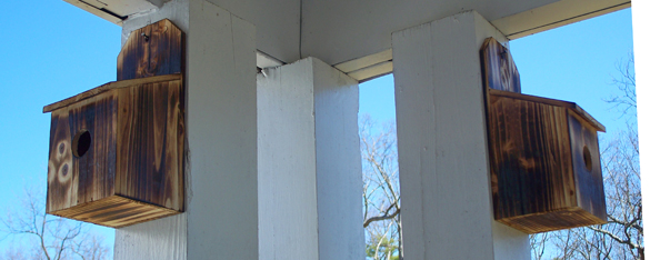 My guy bought me a new industrial-strength fan over yesterday, along with a new shower head that is totally gonna rock my world. I’ve admired his fan for some time now, and this one mirrors his. A full metal, heavy, LOUD, macho-man of a wind machine. Love it. Before he left today, he hung my two birdhouses for me, one each in the corner of my balcony. I do hope to see mama and daddy building in them this Spring, instead of in my ferns! π