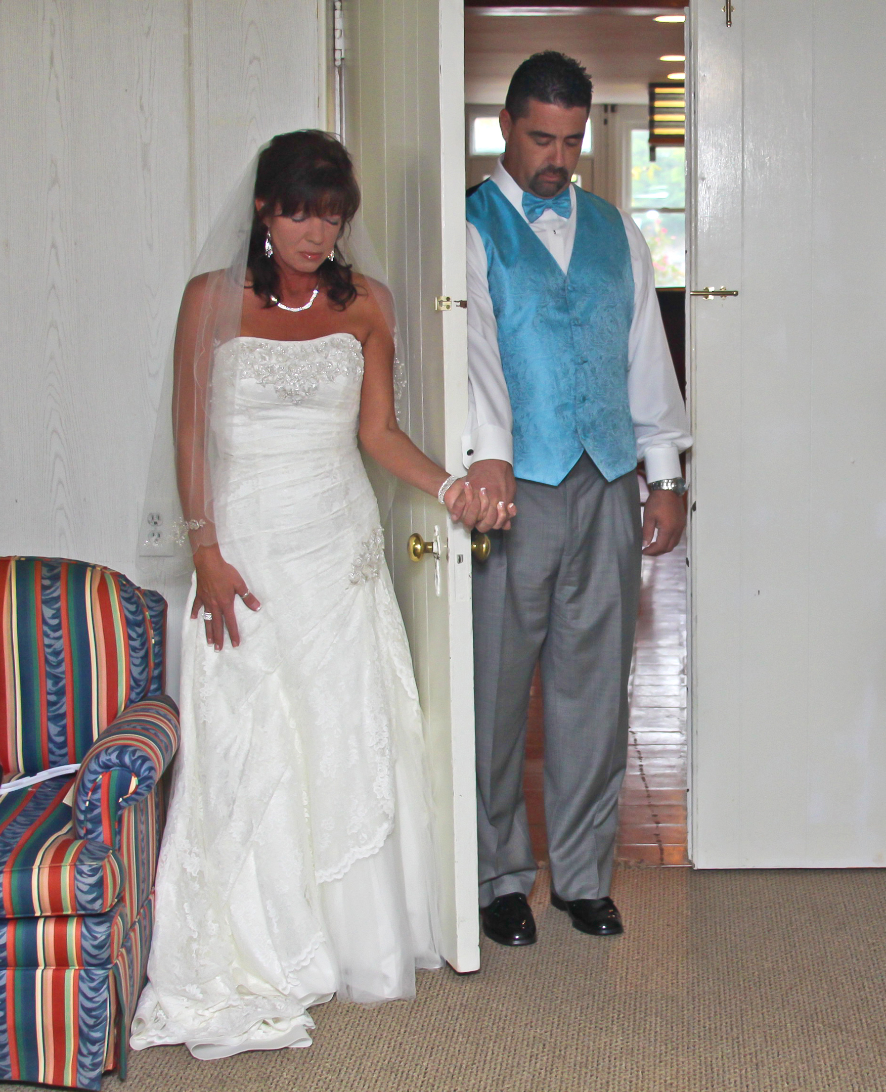 The original plan was to be married by the lake in front of a beautifully draped alter adorned with hanging crystals to reflect the sun and water. As it turns out, we wed indoors in front of the fireplace – nonetheless very beautiful in it’s own unique way. (And believe me, I’ll find a fanciful DIY project with which to use the hanging crystals and reams of unused alter material!)