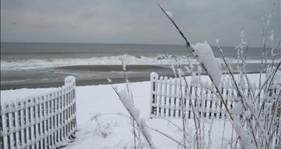 What’s funny about this winter weather event is the fact that it brought snow to our coastline. I couldn’t wait to get up this morning and launch the various webcam links I have along the coast. Sure enough, even the sand on the beach had snow, the waves were coming right up to the snowy sand. What a site. I would love to be at the beach someday when there’s snow, it’s such a rarity and would certainly have to be spontaneous.