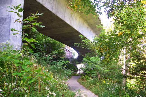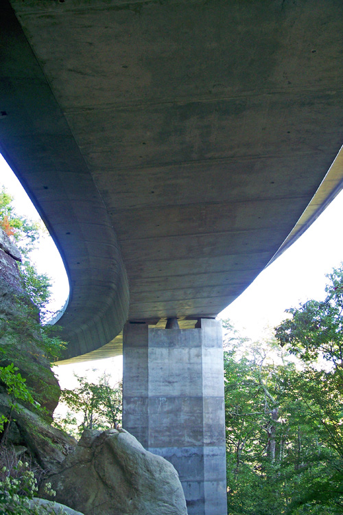 Everyone probably knows by now about my acrophobia (fear of heights) as well as my contradictory fascination with extreme-height architectural feats. I’ve written of the Grand Canyon Skywalk, the Alpspix and the Burj Dubai. I’ve heard of viaducts in my life, but I wasn’t aware that’s what the one along the Blue Ridge Parkway on Grandfather Mountain was called. Appropriately named, I think. So what’s a viaduct? Here’s the official info from the visitor’s center: